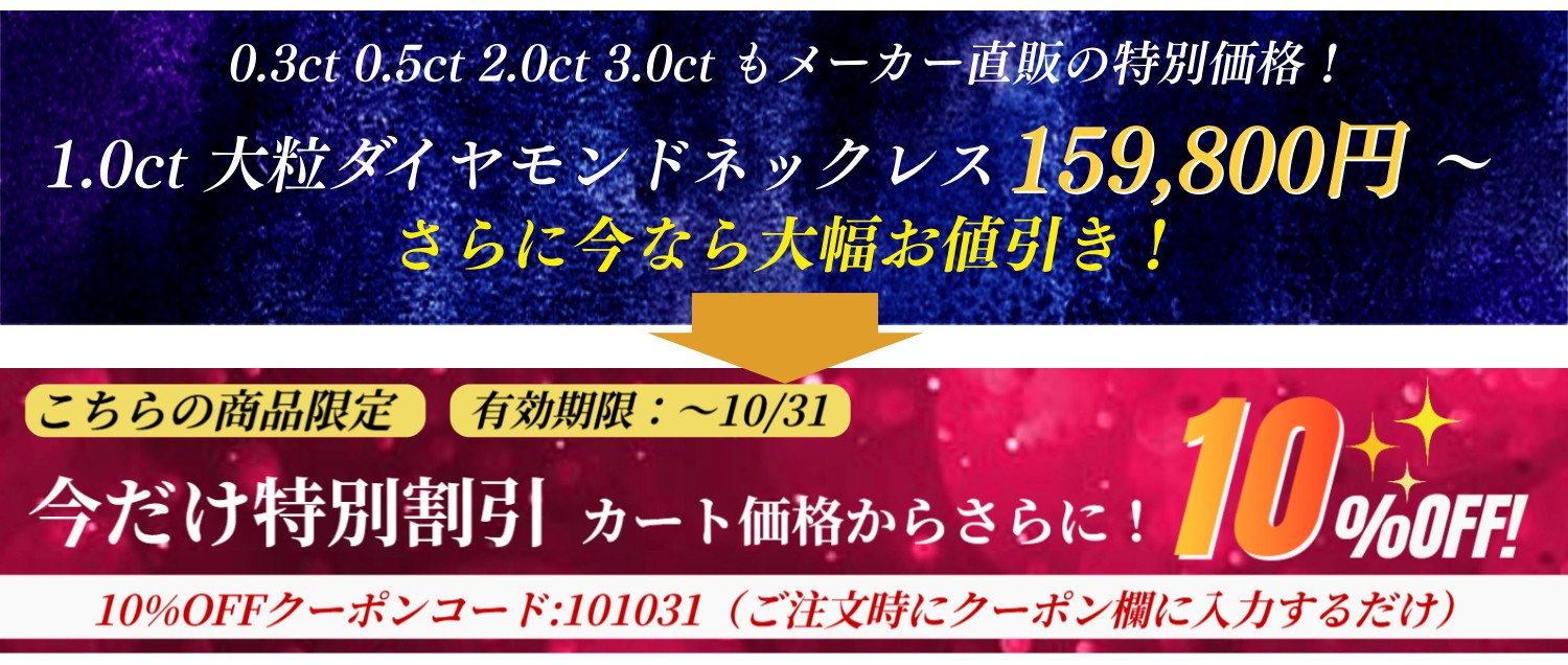 1.00ctUPの一粒ダイヤモンドネックレスが、ネット通販特別価格¥159,800〜(税込)送料無料!